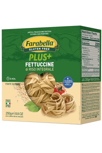 Fettuccine di riso integrale senza glutine specificamente formulata per persone intolleranti al glutine.