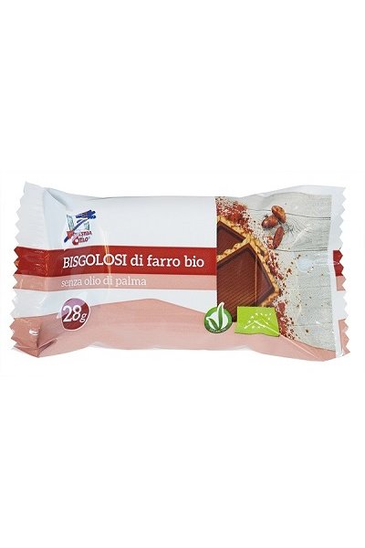 Biscotto di farro ricoperto da una gustosa tavoletta al cacao. Disponibile nella versione in monoporzione dotata di comodo espositore da banco e nella versione multipack contenente 4 gustose merende.