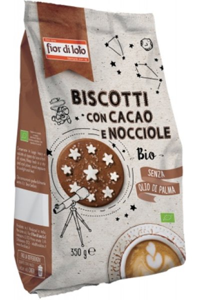 Biscotti con cacao e nocciole bio senza olio di palma ricoperti di sfiziose stelline di zucchero.