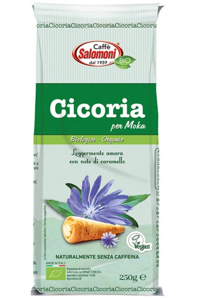 Radice di Cichorium intybus lavata, essiccata, tostata e macinata, leggermente amara con note di caramello.