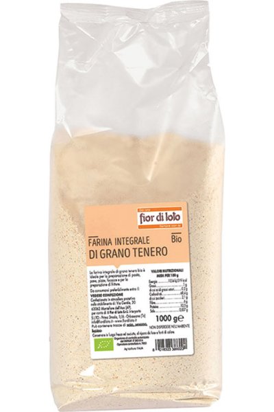 Farina integrale di grano tenero biologico, ricco di fibre realizzato con materie prime di alta qualità. Grazie alla grande quantità di fibre, questo prodotto favorisce l'equilibrio della flora batterica intestinale.