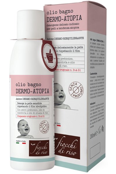 Indicato come detergente cosmetico coadiuvante il trattamento delle pelli a tendenza atopica. Versare nell'acqua del bagnetto o nella mano una piccola quantità di olio bagno, detergere e quindi risciacquare. Si consiglia un utilizzo combinato del preparato insieme agli altri prodotti della linea Dermo-atopia.