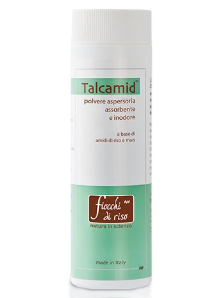 Composta da amidi naturali di mais e di riso, Talcamid è una polvere ad alto potere assorbente, piacevole e rinfrescante, particolarmente adatta a controllare la sudorazione, specie nei bambini e nelle pelli più sensibili.