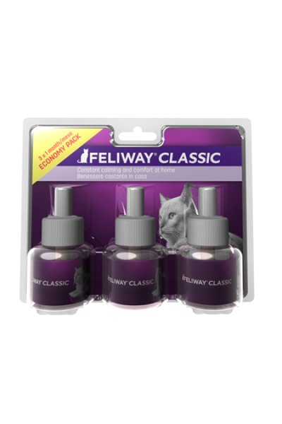 Aiuta i gatti a tenere il ritmo della vita moderna, consentendo un pieno appagamento ed evitando marcature urinarie, graffiature o tendenza a nascondersi. Feliway Classic è una copia del feromone facciale felino che i gatti depositano strofinando il loro muso sulle persone, mobili, porte e altri oggetti nella casa. È il segno che si sentono a loro agio e sicuri nell'ambiente in cui vivono. Feliway Classic utilizzato nell'ambiente in cui vive il gatto fornisce la stessa sensazione di sicurezza dei feromoni depositati dai gatti in natura.