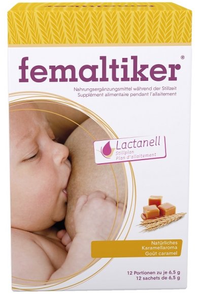Il prodotto può essere usato dal 2° giorno dopo la nascita. Si consiglia di assumere 1 bustina di Femaltiker, una o due volte al giorno, durante un pasto, da 30 a 60 minuti prima dell’allattamento al seno o dell’estrazione con il tiralatte. Sciogliere il contenuto di una bustina in circa 150 ml di latte, bevanda vegetale o acqua e berlo immediatamente. Non superare la dose quotidiana consigliata. Si consiglia l’assunzione per un periodo minimo di due settimane. I primi risultati potrebbero essere visibili già dopo il secondo o terzo giorno di utilizzo.