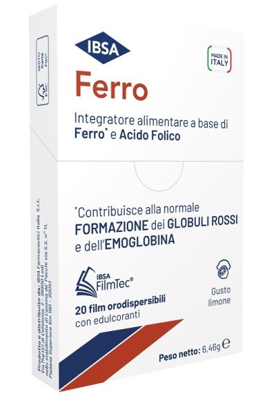 Ferro IBSA è disponibile sotto forma di film orodispersibili, una forma di assunzione dell’integratore molto semplice e pratica. Non deve essere assunto con acqua, si scioglie in pochi secondi una volta appoggiato sulla lingua. Può essere assunto in ogni momento e in ogni condizione, anche da parte di persone con difficoltà di deglutizione, allettate o in condizioni di particolare fragilità.