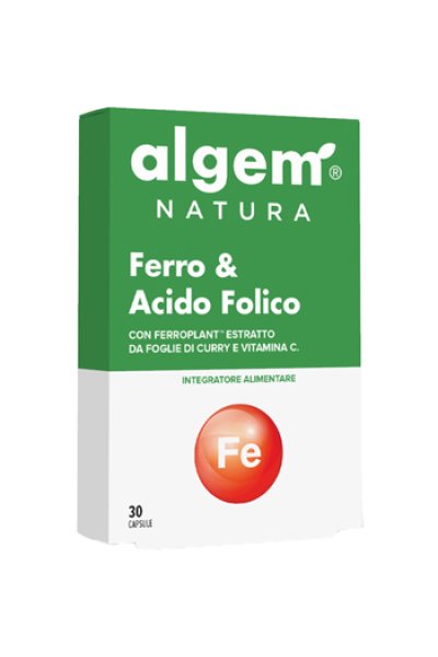 Integratore alimentare in capsule a base di ferro bisglicinato ad elevata biodisponibilità e Ferroplant, fonte vegetale di ferro che forma un deposito a livello intestinale, rilasciato gradualmente nel sangue.