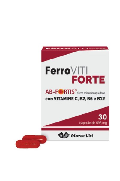 FerroViti Forte è un integratore alimentare a base di ferro, vitamina C, vitamine B2, B6 e B12 utile in caso di carenze alimentari o di maggiore fabbisogno organico di questi nutrienti.
