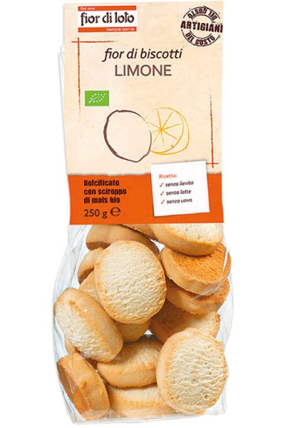 Un buon biscotto preparato artigianalmente, dalla consistenza solida ma friabile, di colore giallo, profumo e gusto caratteristici del limone e a bassissimo contenuto di sodio/sale. Senza lievito, senza latte, senza uova e senza olio di palma. Dolcificato con sciroppo di mais bio. Adatto ai vegani.