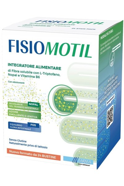 Nutraceutico costituito da un particolare complesso di fibre (frutto-oligosaccaridi a catena corta, Fibra di Guar depolimerizzata e fibra di limone), L-triptofano e vitamina B6, utile per colmare le carenze o gli aumentati fabbisogni di tali nutrienti. I frutto-oligosaccaridi sono utili per l’equilibrio della flora batterica intestinale, mentre la vitamina B6 contribuisce al normale metabolismo energetico. FISIOMOTIL è inoltre arricchito con il nopal, un estratto di fico d’India, dall’azione emolliente e lenitiva sul sistema digerente e favorente la regolarità del transito intestinale.