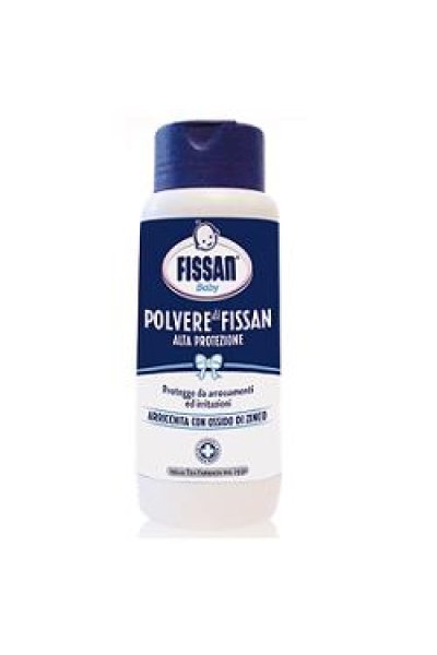 Polvere arricchita con ossido di zinco, consigliata per proteggere e prevenire arrossamenti e irritazioni causati dallo sfregamento con il pannolino o da altri fattori esterni quale per esempio la sudorazione. Grazie al talco puro presente nella sua formula, la polvere di Fissan alta protezione favorisce una normale traspirazione ed esercita sulla pelle umida o sudata una delicata azione assorbente e rinfrescante, lasciandola morbida e asciutta.Formula testata in dermatologia pediatrica. Formula ipoallergenica.
