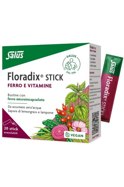 Floradix STICK contiene ferro, vitamine B2, B6, B12, C, niacina e acido folico che contribuiscono alla riduzione della stanchezza e dell’affaticamento.