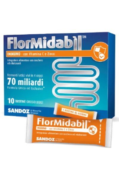 Integratore alimentare di fermenti lattici ad azione probiotica, con vitamina C e zinco, per favorire l'equilibrio della flora intestinale.