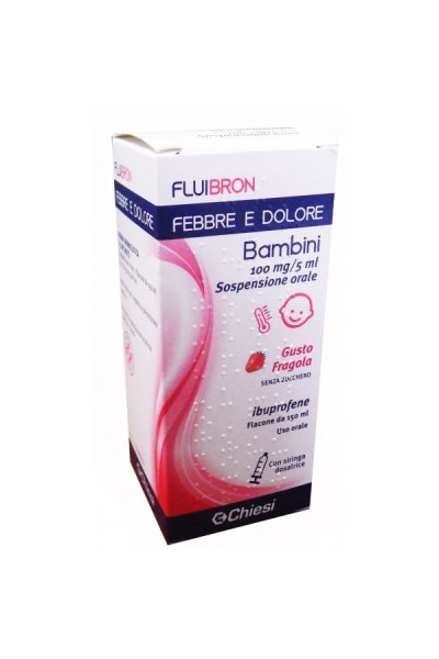 AvvertenzeDopo tre giorni di trattamento senza risultati apprezzabili consultare il medico. Gli effetti indesiderati possono essere minimizzati con l’uso della più bassa dose efficace per la più breve durata possibile di trattamento che occorre per controllare i sintomi (vedere i paragrafi sottostanti sui rischi gastrointestinali e cardiovascolari). L’uso di FLUIBRON FEBBRE E DOLORE deve essere evitato in concomitanza di FANS, inclusi gli inibitori selettivi della COX-2. Gli analgesici, antipiretici, antinfiammatori non steroidei possono causare reazioni di ipersensibilità, potenzialmente gravi (reazioni anafilattoidi), anche in soggetti non precedentemente esposti a questo tipo di farmaci. Il rischio di reazioni di ipersensibilità dopo assunzione di ibuprofene è maggiore nei soggetti che abbiano presentato tali reazioni dopo l’uso di altri analgesici, antipiretici, antinfiammatori non steroidei e nei soggetti con iperreattività bronchiale (asma), poliposi nasale o precedenti episodi di angioedema (vedere paragrafo 4.2 e paragrafo 4.8). Emorragia gastrointestinale, ulcerazione e perforazione: durante il trattamento con tutti i FANS, in qualsiasi momento, con o senza sintomi di preavviso o precedente storia di gravi eventi gastrointestinali, sono state riportate emorragia gastrointestinale, ulcerazione e perforazione, che possono essere fatali. Anziani: i pazienti anziani hanno un aumento della frequenza di reazioni avverse ai FANS, specialmente emorragie e perforazioni gastrointestinali, che possono essere fatali (vedere paragrafo 4.2). Negli anziani e in pazienti con storia di ulcera, soprattutto se complicata da emorragia o perforazione (vedere paragrafo 4.3), il rischio di emorragia gastrointestinale, ulcerazione o perforazione è più alto con dosi aumentate di FANS. Questi pazienti devono iniziare il trattamento con la più bassa dose disponibile. L’uso concomitante di agenti protettori (es. misoprostolo o inibitori di pompa protonica) deve essere considerato per questi pazienti ed anche per pazienti che assumono basse dosi di aspirina o altri farmaci che possono aumentare il rischio di eventi gastrointestinali (vedere paragrafo 4.5). Pazienti con storia di tossicità gastrointestinale, in particolare anziani, devono riferire qualsiasi sintomo gastrointestinale inusuale (soprattutto emorragia gastrointestinale) in particolare nelle fasi iniziali del trattamento. Cautela deve essere prestata ai pazienti che assumono farmaci concomitanti che potrebbero aumentare il rischio di ulcerazione o sanguinamento, come corticosteroidi orali, anticoagulanti come warfarin, inibitori selettivi del reuptake della serotonina o agenti antiaggreganti come l’aspirina (vedere paragrafo 4.5).Quando si verifica emorragia o ulcerazione gastrointestinale in pazienti che assumono FLUIBRON FEBBRE E DOLORE, il trattamento deve essere sospeso. I FANS devono essere somministrati con cautela ai pazienti con una storia di malattia gastrointestinale (colite ulcerosa, morbo di Crohn) poiché tali condizioni possono essere esacerbate (vedere paragrafo 4.8). Gravi reazioni cutanee alcune delle quali fatali, includenti dermatite esfoliativa, sindrome di Stevens-Johnson e necrolisi tossica epidermica, sono state riportate molto raramente in associazione con l’uso dei FANS. Nelle prime fasi della terapia i pazienti sembrano essere a più alto rischio: l’insorgenza della reazione si verifica nella maggior parte dei casi entro il primo mese di trattamento. Reazioni da farmaco con eosinofilia e sintomi sistemici (sindrome DRESS) sono stati osservati con frequenza non nota (vedi paragrafo 4.8). FLUIBRON FEBBRE E DOLORE deve essere interrotto alla prima comparsa di rash cutaneo, lesioni della mucosa o qualsiasi altro segno di ipersensibilità. Cautela è richiesta prima di iniziare il trattamento nei pazienti con anamnesi positiva per ipertensione e/o insufficienza cardiaca poiché in associazione al trattamento con i FANS sono stati riscontrati ritenzione di liquidi, ipertensione ed edema. Studi clinici e dati epidemiologici suggeriscono che l’uso di ibuprofene, specialmente ad alti dosaggi (2400 mg/die) e per trattamenti di lunga durata, può essere associato ad un modesto aumento del rischio di eventi trombotici arteriosi (es. infarto del miocardio o ictus). In generale, gli studi epidemiologici non suggeriscono che basse dosi di ibuprofene (es. ≤ 1200 mg/die) siano associati ad un aumento del rischio di infarto del miocardio. In casi di avvelenamento grave, è possibile che si verifichi acidosi metabolica (vedi paragrafo 4.9). I pazienti con ipertensione non controllata, insufficienza cardiaca congestizia, cardiopatia ischemica accertata, malattia arteriosa periferica e/o malattia cerebrovascolare devono essere trattati con ibuprofene soltanto dopo attenta considerazione. Analoghe considerazioni devono essere effettuate prima di iniziare un trattamento di lunga durata in pazienti con fattori di rischio per eventi cardiovascolari (es. ipertensione, iperlipidemia, diabete mellito, fumo). L’uso di ibuprofene, di acido acetilsalicilico o di altri analgesici, antipiretici, antinfiammatori non steroidei, richiede particolare cautela: • in caso di asma: possibile broncocostrizione; • in presenza di difetti della coagulazione: riduzione della coagulabilità; • in presenza di malattie renali, cardiache o di ipertensione: possibile riduzione critica della funzione renale (specialmente nei soggetti con funzione renale o epatica compromessa, insufficienza cardiaca o in trattamento con diuretici), nefrotossicità o ritenzione di fluidi; • in presenza di malattie epatiche: possibile epatotossicità; • reidratare il soggetto prima dell’inizio e nel corso del trattamento in caso di disidratazione (ad esempio per febbre, vomito o diarrea); Nei bambini e negli adolescenti disidratati esiste il rischio di alterazione della funzionalità renale. Le seguenti precauzioni assumono rilevanza nel corso di tra