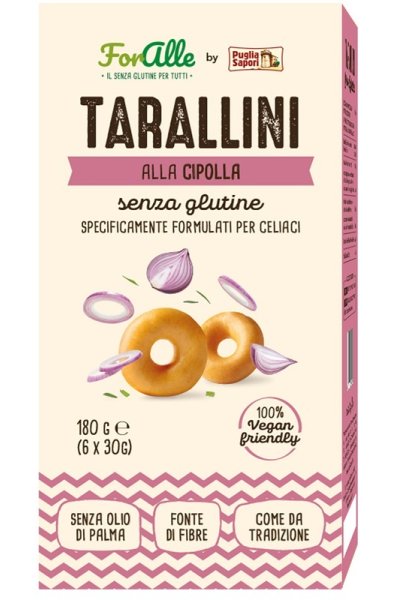 Snack salato senza glutine specificamente formulato per celiaci alla cipolla. Fonte di fibre.
