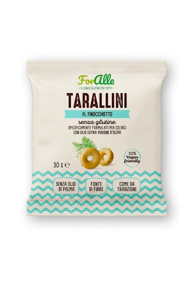 Snack salato specificamente formulato per celiaci, al finocchietto con olio extravergine d'oliva.