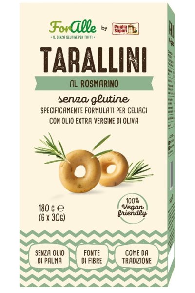 Snack salato senza glutine specificamente formulato per celiaci al rosmarino con olio extravergine d'oliva. Fonte di fibre.