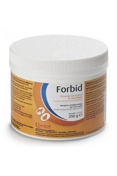 È consigliabile effettuare un ciclo di somministrazione minimo di 15 giorni, estendibile secondo le indicazioni del Medico Veterinario. Se l’animale è soggetto all’ingestione delle proprie feci e condivide lo stesso ambiente con altri cani o gatti, estendere la somministrazione di Forbid anche a questi soggetti, così da impedire l’assunzione di feci altrui. Si raccomanda acqua a volontà.