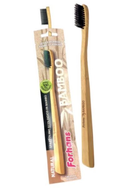 Spazzolino ecologico setole morbide in bambù e carbone. Grazie alla testina con speciali filamenti morbidi in bamboo, consente la rimozione della placca ed il massaggio delle gengive. L'aggiunta del carbone permette di avere un effetto smacchiante. Con impugnatura ergonomica. Prodotto 100% biodegradabile.