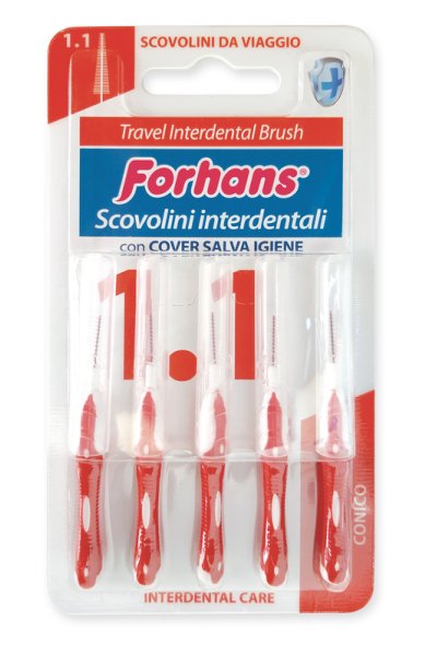 Ogni blister contiene 5 scovolini interdentali più un copritestina da viaggio.