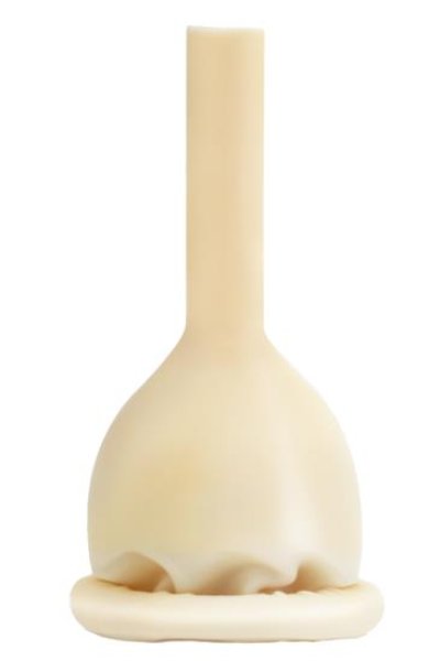 La calotta zigrinata è stata progettata per eliminare la possibilità che il sistema di drenaggio si attorcigli su se stesso, con conseguente blocco del flusso di urina e perdita o "ballooning" (rigonfiamento) della guaina.