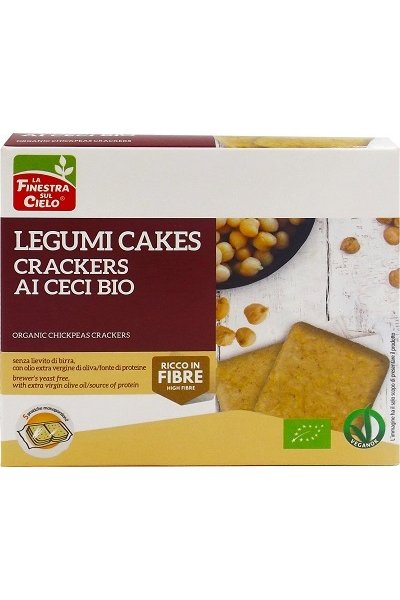 Prodotto da forno biologico a base di ceci e fiocchi di avena, ricco in fibre, con olio extra vergine di oliva (17,9%), senza frumento e senza lievito di birra.