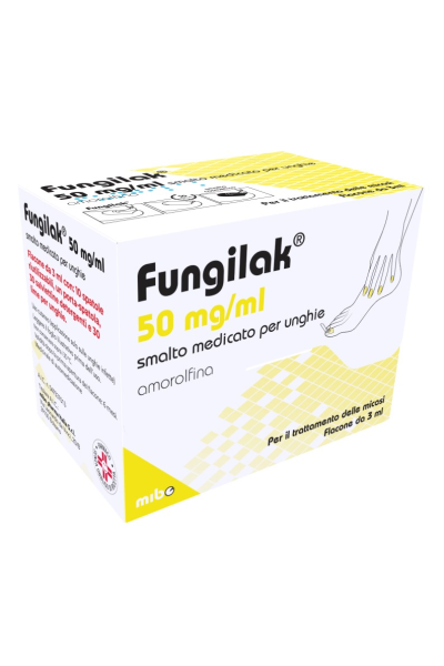 FUNGILAK è un medicinale (agente antimicotico ad ampio spettro) per il trattamento locale delle infezioni fungine (micosi) delle unghie (che non presentano il coinvolgimento della matrice ungueale ad es. funghi bianchi superficiali, funghi al di sotto dell'unghia, che interessano meno del 50% della superficie dell'unghia e meno di tre unghie).