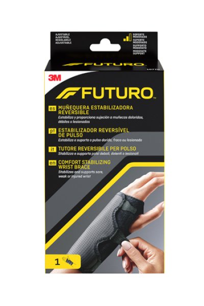 Tutore reversibile per polso. Stabilizza e supporta polsi deboli, dolenti o lesionati. Per supportare polsi rigidi, deboli o lesionati. Ideale per: Supporto per lesioni comuni, ad esempio distorsioni, contratture e sintomi della sindrome del tunnel carpale*. Grazie al design ergonomico a taglio basso è possibile muovere liberamente le dita. Lo stabilizzatore palmare contribuisce a fornire una stabilità moderata. Tutore con tre chiusure a strappo per un adattamento personalizzato.