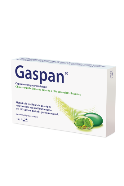 GASPAN è un medicinale tradizionale di origine vegetale contenente oli essenziali di menta piperita e olio di cumino.