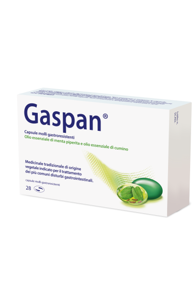 GASPAN è un medicinale tradizionale di origine vegetale contenente oli essenziali di menta piperita e olio di cumino.