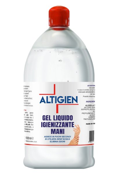 Gel liquido igienizzante mani. Azione rapida senza risciacquo. Con +70% di alcool.