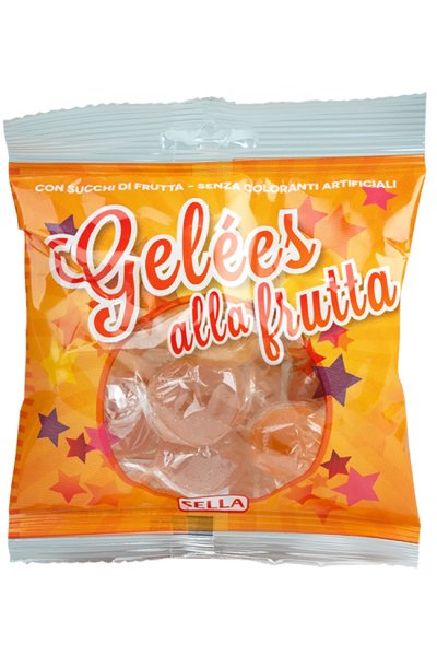 Zucchero, sciroppo di glucosio, succhi di frutta (arancia, limone, pera, fragola) 8%; gelificante: pectina; acidificante: acido citrico, aromi.