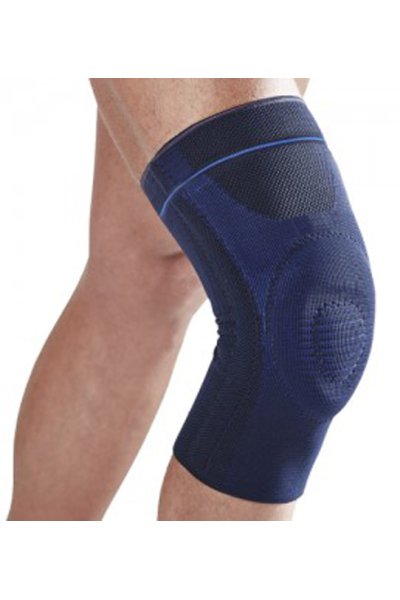 Steccaggio laterale a spirale per la stabilizzazione dell’articolazione, fornisce una compressione di Classe 3 (francese), un effetto propriocettivo e un riallineamento della rotula. Tessuto compressivo realizzato con 3D Motion Technology.