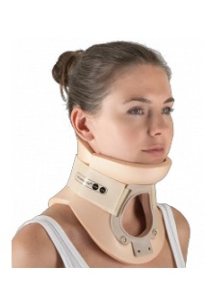 Dispositivo medico indicato per traumi cervicali, distorsioni cervicali, discopatie cervicali, fase post-operatoria della chirurgia cervicale, fratture cervicali, neuropatie di origine cervicale, osteoartrosi e artrite reumatoide del tratto cervicale. Struttura bivalva in schiuma di plastazote ipoallergenico, latex-free, con rinforzi rigidi anteriori e posteriori. Struttura sagomata con 4 punti di appoggio: mento, sterno, nuca, dorso. Foro tracheale. Valva posteriore con fori per l’areazione. Sistema di chiusura a strappo. Imbottitura mentoniera. Radiotrasparente e impermeabile.