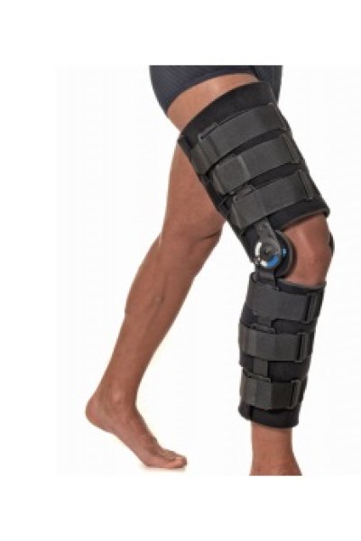 Dispositivo medico indicato per l'immobilizzazione assoluta o relativa dell’articolazione del ginocchio a seguito di interventi chirurgici, distorsioni di entità grave o media, traumi. Fase di rieducazione. Controllo dell’ampiezza di movimento nel recupero post-traumatico e post-chirurgico.