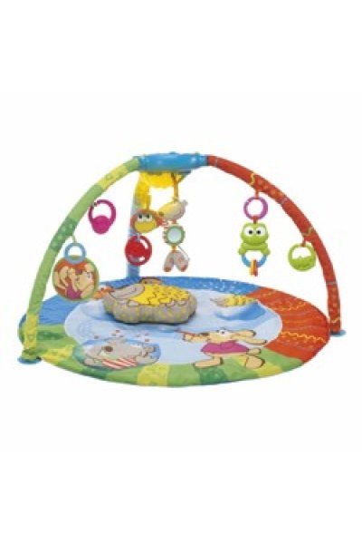 Tappeto imbottito, con un cuscino a forma di riccio. Pannello elettronico con cavo di connessione mp3. Il pannello elettronico emette una luce multicolore con effetto dissolvenza, 25 minuti di musica continua ed effetti sonori preregistrati. 7 pendenti multi-attività: specchietto, crinkle, anelli in plastica per la dentizione. Tappeto e cuscino lavabili in lavatrice. 3 x AAA da 1,5 Volt (non incluse).