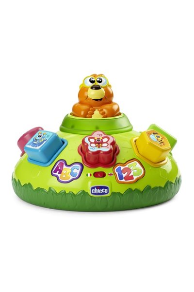 Sam la Talpa è un gioco a incastri con 5 formine colorate, luci e 2 pulsanti interattivi: insegna in italiano e in inglese i nomi delle forme, i colori, i nomi degli animali e diverte i bambini grazie alle canzoncine degli animali, delle lettere e dei primi numeri.