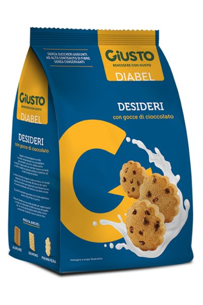 Biscotti con gocce di cioccolato, a basso indice glicemico, senza zuccheri aggiunti, ad alto contenuto di fibre.