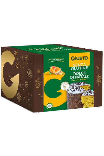 Uova pastorizzate, miscela base (amidi: patate, mais, tapioca; fibre vegetali: psyllium, inulina; farina di riso; emulsionante: E471; vegetali: pisello; addensanti: guar, E464; sale; conservante: acido sorbico; enzimi), burro, zucchero, zenzero disidratato candito (8%) [zenzero, zucchero di canna, metabisolfito di sodio (E223)], acqua, miscela base (amidi: frumento deglutinato, mais; destrosio; fibre vegetali: psyllium, inulina; pasta acida di mais, farina di teff rosso, farina di lenticchie; addensanti: guar, E464; farina di mais tostata), albicocche candite (6%) (albicocche, zucchero, sciroppo di glucosio), surrogato di cioccolato (zucchero; grassi vegetali: palmisto e palma; latte magro in polvere, siero di latte in polvere, emulsionanti lecitine di soia e girasole, aromi), gocce di cioccolato fondente [zucchero, pasta di cacao, burro di cacao; emulsionante: lecitina (di soia), estratto naturale di vaniglia], lievito di birra, sciroppo di riso (farina di riso, acqua), pasta scorza arancia [scorza d’arancia candita (scorza d’arancia, zucchero, sciroppo di glucosio), zucchero, sciroppo di glucosio], pasta di scorza di zenzero (0,45%) (zenzero candito: zenzero, zucchero, sciroppo di glucosio; zucchero, sciroppo di glucosio), pasta madre (0,19%) [farina di riso, farina di quinoa, lievito, lievito lattico probiotico kluybread (kluyveromyces marxianus fragilis B0399), enzimi]; conservante: E202.
