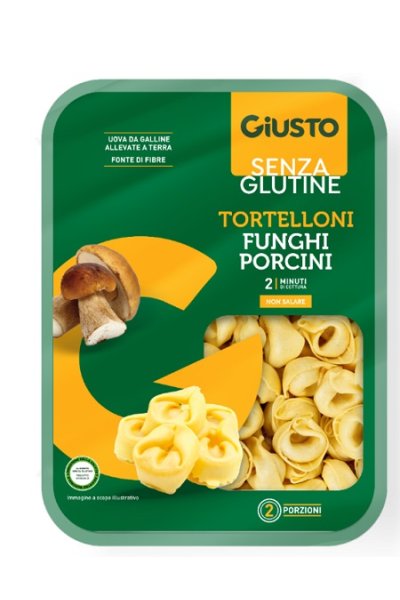 Farina di riso, amido di mais, uova 16% (da galline allevate a terra), ricotta 13% (siero di latte, latte vaccino, crema di latte, sale; correttore di acidità: acido citrico), albume d’uovo, formaggio (latte, siero di latte, sale), Grana Padano 3%, (latte, sale, caglio; conservante: lisozima da uova), panna, fibra vegetale, siero di latte, sale, funghi porcini 0,8% (Boletus edulis), brodo ai funghi [sale, fecola di patate, estratto di lievito, maltodestrina di patate, funghi porcini disidratati (7%), verdure disidratate (cipolla, carota, aglio), olio di girasole, cipolla, aglio, estratto di lievito, aromi; addensante: gomma di xanthan, gomma di guar.