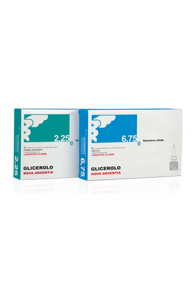 GLICEROLO EG Prima infanzia 2,25 soluzione rettale Ogni contenitore monodose contiene: principio attivo: Glicerolo 2,25 g GLICEROLO EG Adulti 6,75 g soluzione rettale Ogni contenitore monodose contiene: principio attivo: Glicerolo 6,75 g Per l’elenco completo degli eccipienti vedere paragrafo 6.1.