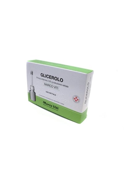 GLICEROLO MARCO VITI prima infanzia 2,25 g soluzione rettale Ogni contenitore monodose contiene: Principio attivo: Glicerolo 2,25 g GLICEROLO MARCO VITI bambini 4,5 g soluzione rettale Ogni contenitore monodose contiene: Principio attivo: Glicerolo 4,5 g GLICEROLO MARCO VITI adulti 6,75 g soluzione rettale Ogni contenitore monodose contiene: Principio attivo: Glicerolo 6,75 g Per l’elenco completo degli eccipienti vedere paragrafo 6.1.