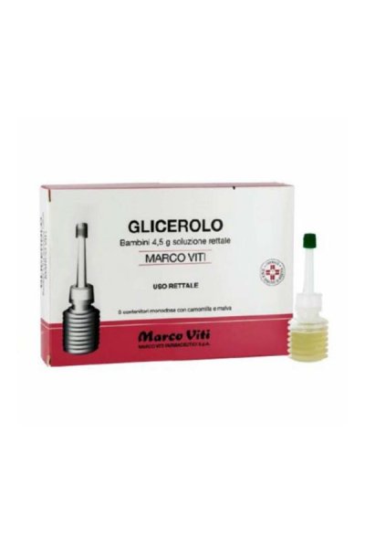 GLICEROLO MARCO VITI prima infanzia 2,25 g soluzione rettale Ogni contenitore monodose contiene: Principio attivo: Glicerolo 2,25 g GLICEROLO MARCO VITI bambini 4,5 g soluzione rettale Ogni contenitore monodose contiene: Principio attivo: Glicerolo 4,5 g GLICEROLO MARCO VITI adulti 6,75 g soluzione rettale Ogni contenitore monodose contiene: Principio attivo: Glicerolo 6,75 g Per l’elenco completo degli eccipienti vedere paragrafo 6.1.