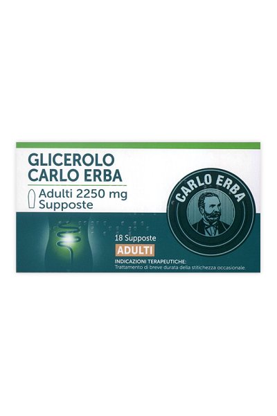 GLICEROLO CARLO ERBA Prima infanzia 900 mg supposte Una supposta prima infanzia contiene: principio attivo: Glicerolo 900 mg. GLICEROLO CARLO ERBA Bambini 1375 mg supposte Una supposta bambini contiene: principio attivo: Glicerolo 1375 mg. GLICEROLO CARLO ERBA Adulti 2250 mg supposte Una supposta adulti contiene: principio attivo: Glicerolo 2250 mg. GLICEROLO CARLO ERBA Bambini 2,25 g soluzione rettale Ogni contenitore monodose contiene: principio attivo: Glicerolo 2,25 g. GLICEROLO CARLO ERBA Adulti 6,75 g soluzione rettale Ogni contenitore monodose contiene: principio attivo: Glicerolo 6,75 g. Per l’elenco completo degli eccipienti, vedere paragrafo 6.1.