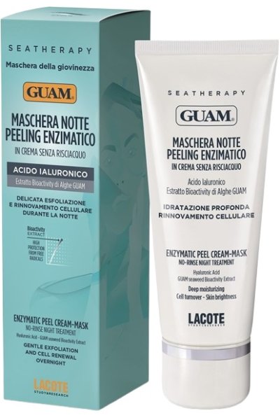 Guam maschera notte peeling enzimatico ad effetto rigenerante che agisce durante il riposo notturno. al risveglio la pelle sarà fresca, fortemente idratata, luminosa e apparirà più giovane. favorisce una delicata esfoliazione enzimatica che aiuta a regolarizzare il normale processo di desquamazione che può rallentare con gli anni, ridonando tono e luminosità alla pelle. grazie ai propri componenti attivi ripristina l'effetto barriera e l'idratazione e contribuendo a ridurre la rugosità cutanea.