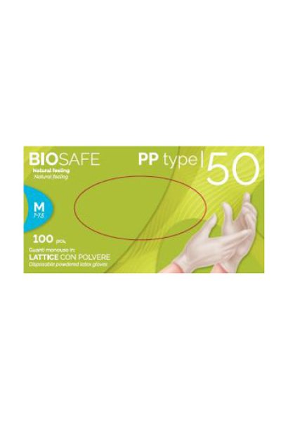Guanti da esaminazione ed esplorazione in lattice naturale di prima qualità, monouso, non sterili, leggermente aspersi di polvere lubrificante, colore bianco, forma anatomica intercambiabile destra e sinistra (ambidestri) e superficie liscia. I polsini hanno un bordino elastico anti-arrotolamento che rinforza l'estremità del guanto, ne aumenta la vestibilità ed impedisce alla manichetta di arrotolarsi, e sono di lunghezza tale da consentirne l'aderenza al camice in qualunque posizione della mano. I guanti BIOSAFE PP TYPE 50 sono realizzati a corpo unico, quindi privi di saldature e di sbavature, hanno un'ottima consistenza, elasticità e morbidezza tali da garantire una perfetta aderenza ed un'ottima sensibilità all'operatore. Sono privi di impurezze ed uniformi nella distribuzione, esenti da macchie o imperfezioni di qualsivoglia natura. Grazie all'elevata biocompatibilità ed ergonomicità, permettono un uso prolungato senza affaticamento. Colore bianco. Non sterili.