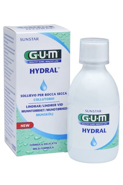 La nuova gamma completa di prodotti GUM HYDRAL dà un sollievo rapido e duraturo e contemporaneamente protegge la bocca dai danni dovuti alla secchezza. Attiva fin dal primo utilizzo, la sua formulazione innovativa idrata le mucose orali migliorando la qualità della vita. La gamma GUM HYDRAL è stata specificatamente sviluppata per la mucosa orale sensibile. La gamma di prodotti è non irritante. La formulazione di GUM HYDRAL è delicata sulla bocca sensibile, a base non oleosa, e non contiene alcol, parabeni, Sodium Lauryl Sulfate (SLS), glicerina o aromi aggressivi. Il gusto menta dolce alle erbe a basso tasso di allergene è ben tollerato anche dalla mucosa orale più fragile. La gamma GUM HYDRAL è indicata solo per uso orale. Innocua se ingerita.