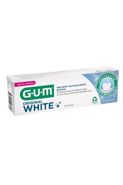 Il dentifricio GUM Original White ripristina il bianco naturale originale dei denti.