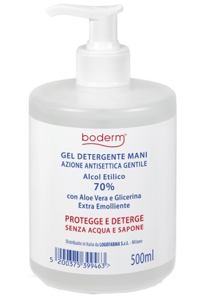 Gel detergente per le mani ad azione antisettica gentile.