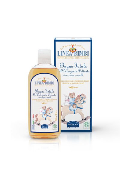 Base detergente arricchita dalle proteine di Mandorle dolci e dagli estratti di fiori di Calendula e Camomilla che permette il distacco delle impurità senza alterare le delicate strutture del capello e della cute del neonato.